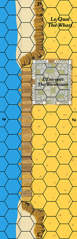 Une mini-carte de jonction représentant un quai avec son entrepôt. Elle peut s'accoler à la carte du Château Gallois (v2) pour reconstituer l'aspect de la première version.