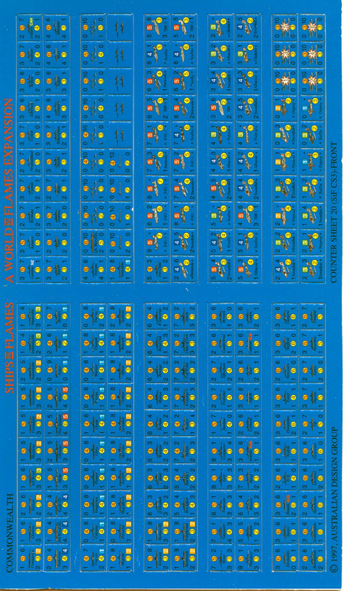 2007 Ships in Flames is an expansion for World in Flames that contains 1000 ships depicting every major CV, BB, CA, Sub and tramp steam-ship of World War II all in full-colour realistic camouflages.