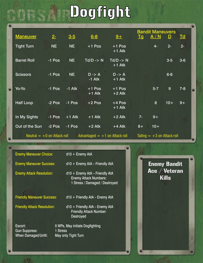 - Detailed Dogfighting rules! - You'll select a Maneuver, adjust Position, and do your best to shoot down enemy aircraft! The AI uses the same rules for Maneuvering on your Aircraft!
