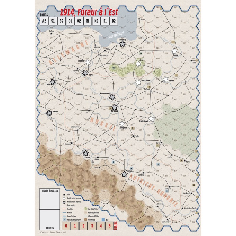 1914 : Fureur à l’Est est un jeu simulant les cinq premiers mois de la Grande Guerre à l’Est. Il oppose les armées russes aux forces austro-allemandes. De l'invasion de la Prusse orientale et de la Galicie mi-août aux combats de Lodz en décembre en passant par les batailles de Tannenberg, des lacs de Mazurie et de la Vistule.