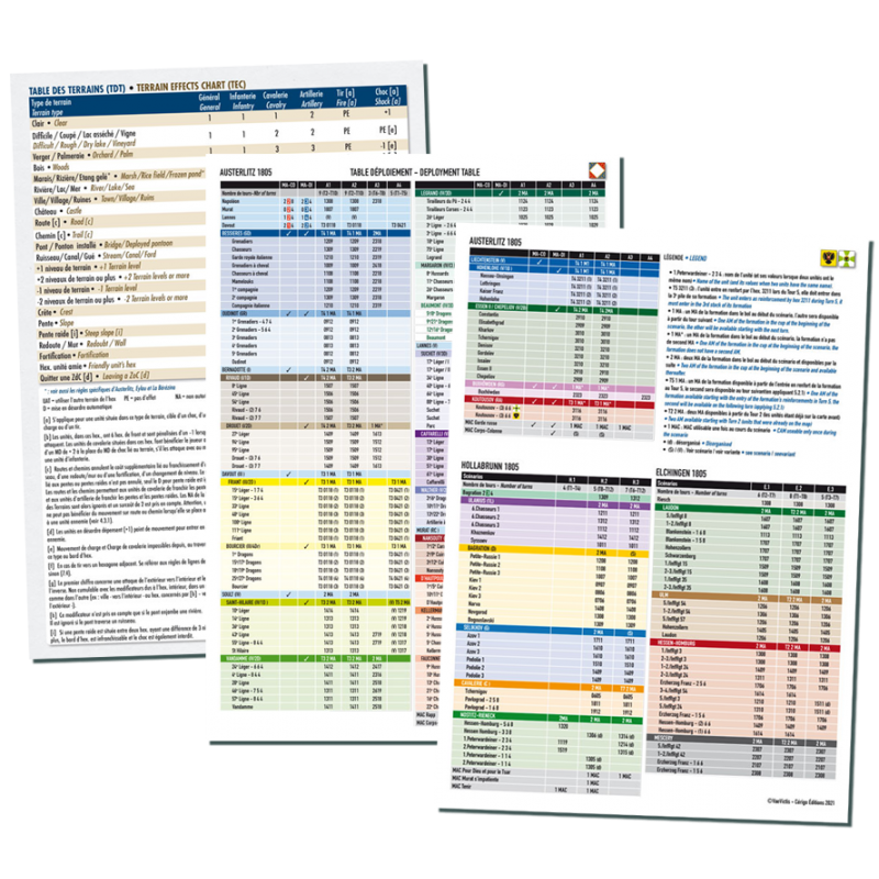 Trois Jours de Gloire 1805 offre par ailleurs des scénarios spécialement adaptés à la compétition pour Elchingen et Hollabrunn et deux modes de jeu différents pour Austerlitz (activations gérées au niveau des divisions ou au niveau des corps d’armée).