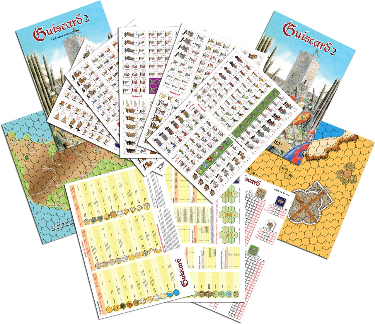 5 planches de pions A4 imprimées sur carton épais (similaire à ceux d'AGER SANGUINIS et MONTGISARD).