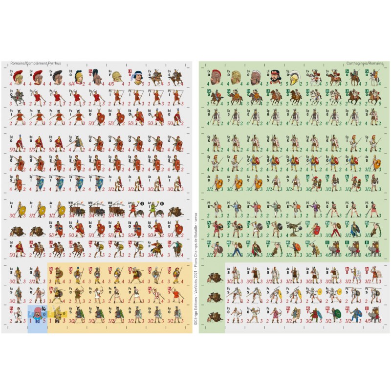 L’adaptation pour jeu sur carte permet de jouer sur une surface réduite et sans figurines de nombreuses batailles de l’Antiquité avec en moyenne entre 20 à 30 pions de chaque côté.