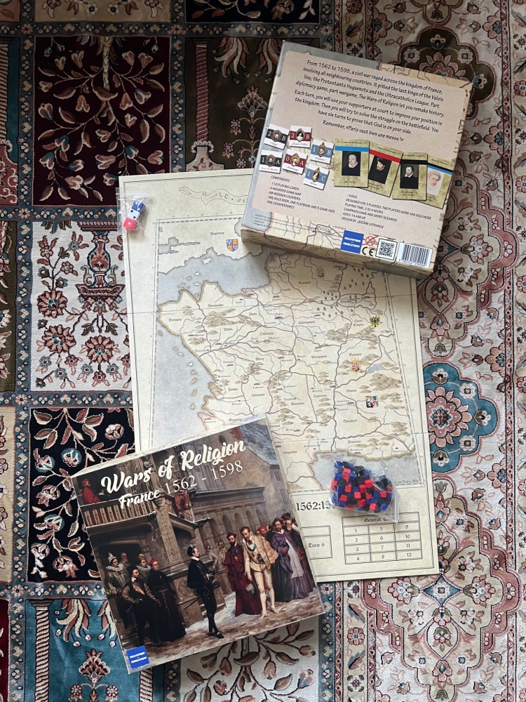 Avec deux ou (trois de préférence) joueurs, le jeu simule les Guerres de religion entre le massacre de Wassy en 1563 et la signature de l’Edit de Nantes en 1598.