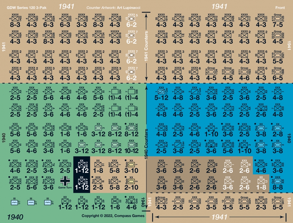 1941, Operation Barbarossa, the invasion of the Soviet Union couvre l'assaut initial de l'Union soviétique, à partir de l'été 1941. Les unités sont des divisions/corps, avec une échelle de temps d'un mois par tour de jeu, et une échelle de 65 kilomètres par hexagone.