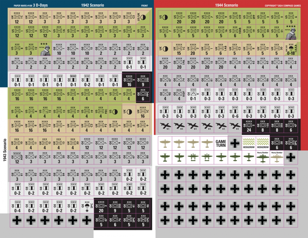 Le jeu contient Une planche de 280 pions de type OTAN, avec des corps d'armée et des armées comme unités de manœuvre.