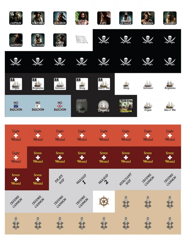 - une quinzaine de fiches permettant de gérer les équipages/combats/recherches de trésors/inventaires/promenades dans les rues