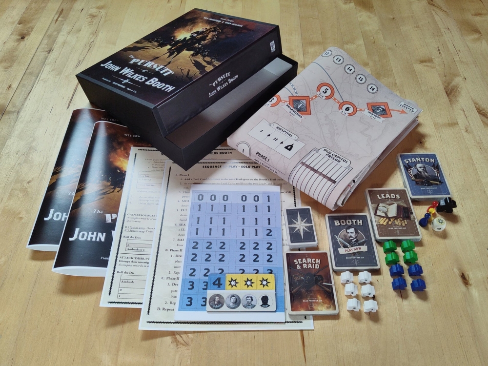 The Pursuit of John Wilkes Booth est un jeu de déduction et d'enquête. Les joueurs jouent le rôle de détectives chargés de capturer l'assassin. Les autorités de l'Union n'étaient pas sûres de la destination de Booth. En tant que détectives, les joueurs doivent suivre des pistes, découvrir des indices et reconstituer la trace de Booth alors qu'il s'échappe. Les joueurs peuvent demander l'aide du secrétaire Stanton pour les aider dans leur mission. En fin de compte, les détectives doivent localiser Booth avec précision en effectuant une recherche fructueuse, puis effectuer un raid pour le capturer ou le tuer.