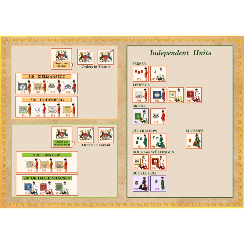 - Pions = 1 Brigade, 1 Bataillon, 1 à 3 Escadrons, 1 batterie.