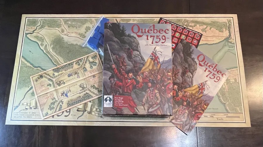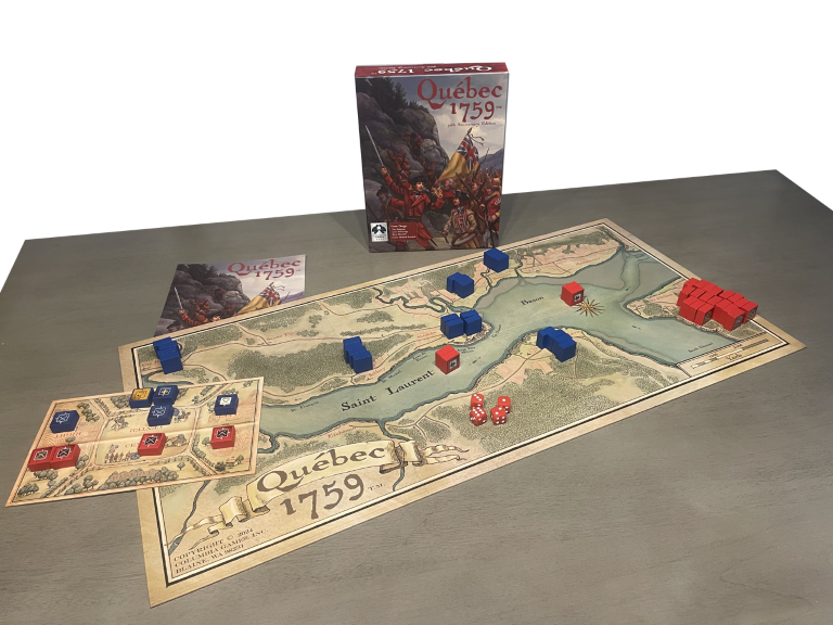 Quebec 1759 est un wargame simple et court, qui retrace le conflit entre les Britanniques et les Français au Canada pendant la guerre franco-indienne. Le jeu est accompagné d’une superbe carte dessinée dans le style de l’époque. Les déplacements s’effectuent via un système point à point suivant les routes et les villes de la région autour de Québec. Le jeu est livré avec une poignée de blocs représentant les unités britanniques et françaises.