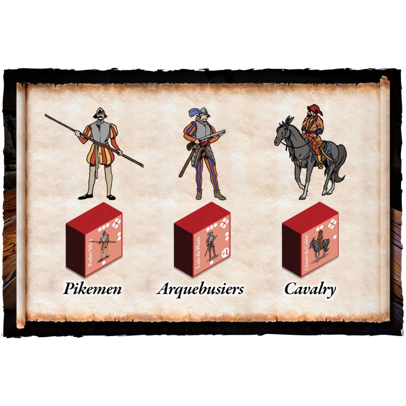 Les cartes sont le moteur du jeu : elles activent les unités pour qu’elles se déplacent et attaquent, et permettent des actions spéciales telles que les redoutables encamisadas du joueur espagnol. Il n’y a pas de nombre fixe de tours ; le joueur ottoman a le temps de préparer le siège, tandis que le Tercio de Sarmiento travaille sans relâche pour contrecarrer ces plans.