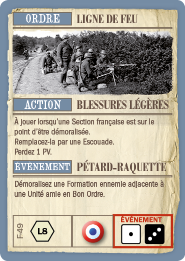There are several new orders, like Offensive, Runner, and Machine Gun Suppress, all reflecting the intense combat. There are over 30 actions including Engineering works, Go to Ground, and Rolling Barrage, highlighting terrain destructions and powerful artillery. 40 events deal with experiences unique to the times, such as Tanks and Sturmtruppen. Among the new and many contemporary events are Trommelfeuer, High Command Meddling, Petard Raquette and Machine Gun Nest.
