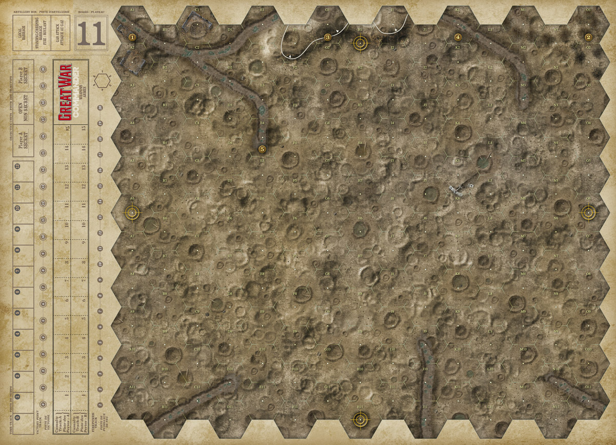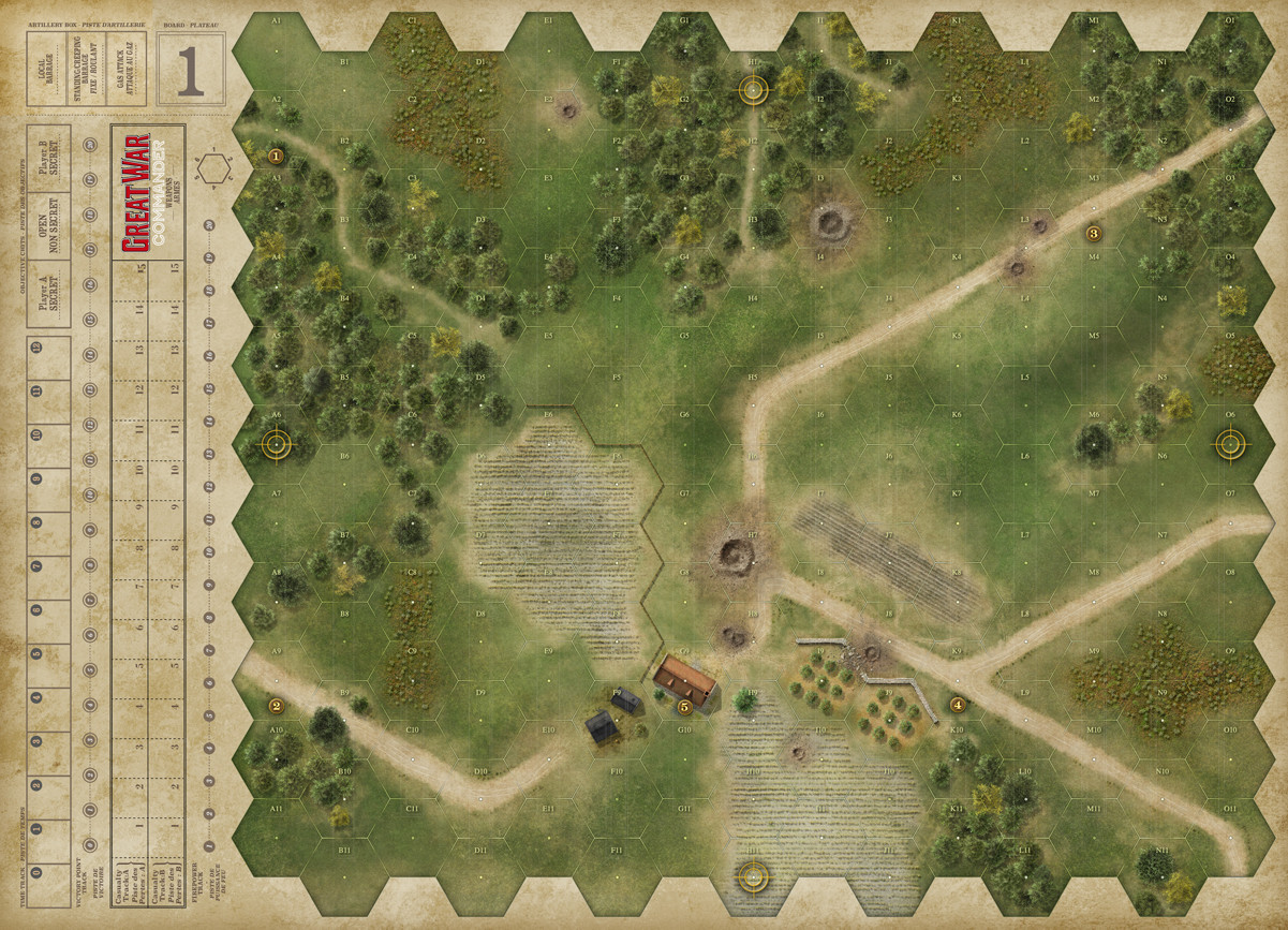 Great War Commander(GWC) is a wargame based on the popular Combat Commander series created by Chad Jensen where two players take turns playing “Fate cards” in order to activate military units on the mapboard. GWC offers many new and unique elements to its parent system. The maps are deeper, allowing more playing surface to maneuver two battalion-size forces facing each other.