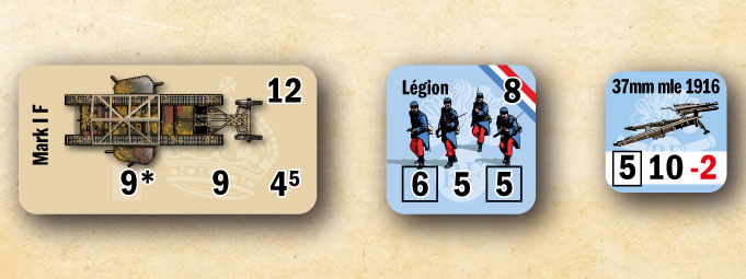 Il inclut également 2 nouveaux magnifiques plateaux et 113 nouveaux pions : de nouvelles unités (la Légion étrangère), de nouveaux chars (Mark I) et de nouvelles armes (canon d'infanterie de 37 mm).