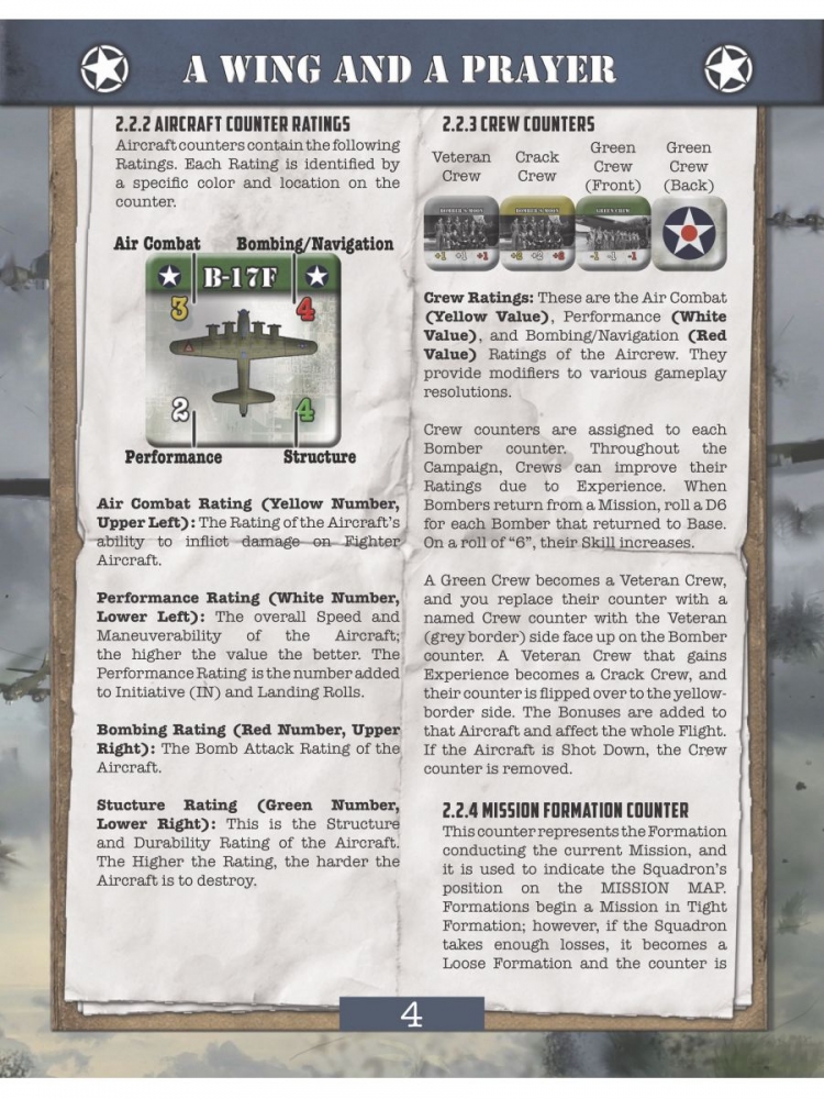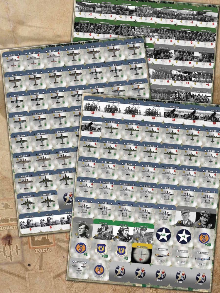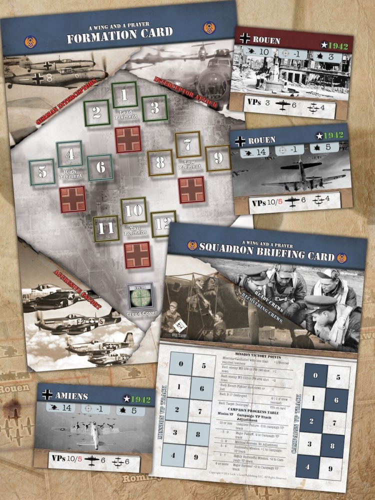 Your Goal is to manage your squadron aircraft and complete a campaign consisting of a series of Daylight Bombing Missions against strategic Axis targets and score as many Victory Points (VP) as possible to assist the Allied war efforts. Campaigns can be Short (12 Missions), Moderate (18 Missions), or Long (24 Missions). To complete your mission it’s going to take A Wing and a Prayer.