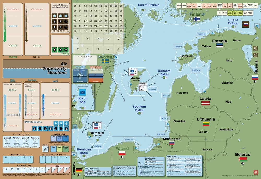 The Baltics are represented by a Strategic Display incorporating Land Areas and At Sea Boxes.