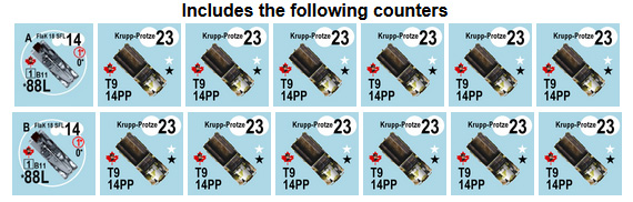 A large 10-turn scenario with an estimated playing time of 11 hours & 4 minutes featuring: Germans: 15x Squads, 5x Leaders, MGs, 50mm Mortars, ATRs, DCs, 2x 37mm A-T Guns, Motorcycles with sidecars, Light Trucks, 4x Armoured Cars, and an 88mm "Bufa" Bunker Buster self-propelled gun; Belgians: 10x Squads, 3x Leaders, MGs, 50mm Mortar, 3x MG Pillbox, T-13 Tank Destroyer, and fortifications.