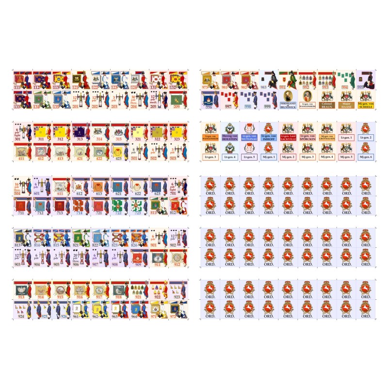 - 5 x A4 Countersheets (720 x 15mm - 5/8" square counters & marquers and 50 x rectangular counters)