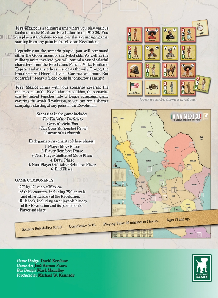 In Viva Mexico you play the Government side or the Rebel side in the Mexican Revolution of 1910-1920.