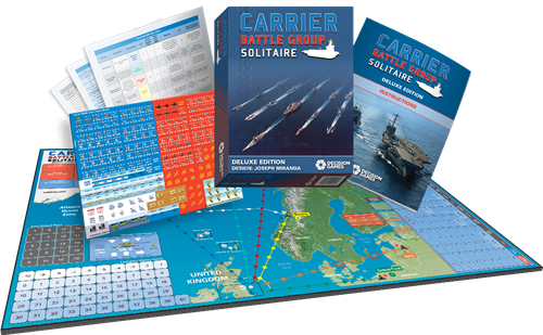 Carrier Battle Group deluxe edition updates the game first appearing in Modern War #14, offering new map and counter artwork, a mounted game board, updated rules, new player aid cards, and a campaign analysis article. Can you successfully command your carrier battlegroup against numerous threats in the North Atlantic, helping NATO to victory in the war that never was? There is one way to find out—play Carrier Battle Group.