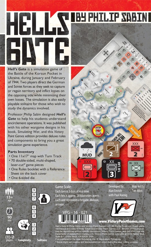 War games author, professor, and designer Philip Sabin introduced Hell's Gate in his book, Simulating War, and this Victory Point Games edition has polished the game's original components to bring you a great simulation game experience.