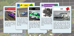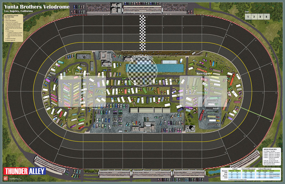 Included in the game will be two very different race tracks, a tri-oval super speedway for wide-open free-wheeling racing and a short track for a tight wheel to wheel bumper car duel. Each track uses the same deck of racing cards but the cards that work best on one may be useless in the other.