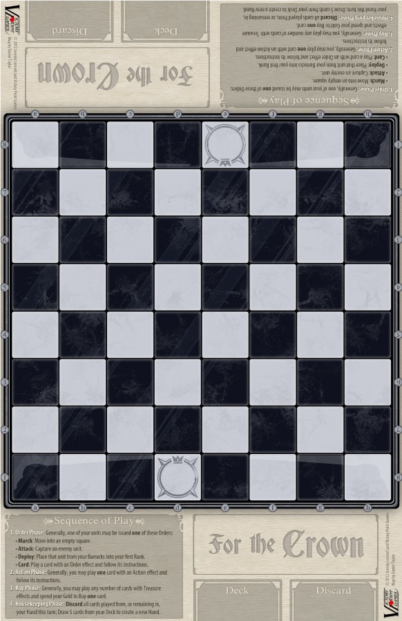 In this game that combines the highly popular "deck-building" mechanic with the most engrossing variations of Chess, do you have what it takes to wisely divide your attention between preparations and military maneuvering? To outpace your opponent’s development while eluding capture? Strategize your position and seize glory in For the Crown!