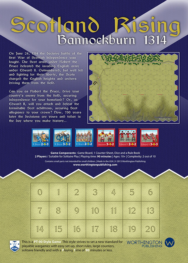 On June 24, 1314 the decisive battle of the first War of Scottish Independence was fought. The Scot army under Robert the Bruce defeated the invading English army under Edward II. Outnumbered, but well led and fighting for their liberty, the Scots charged the English knights and archers driving them from the field. Can you as Robert the Bruce, drive your country’s enemy from the field, securing independence for your homeland? Or, as Edward II, will you attack and defeat the formidable Scot schiltrons, securing Scot allegiance to your crown? Now, 700 years later the decisions are yours and today is the day where you make history…
