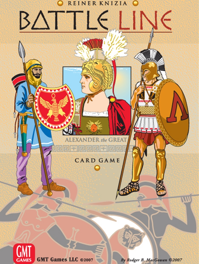 Battle Line is a two-player card game built around the theme of warfare during the age of Alexander the Great. Battle Line features 60 full-color Rodger MacGowan/Mark Simonitch cards depicting the prominent formations of the period (War Elephants, Heavy Cavalry, Phalanx, etc.) and 10 full-color tactics "wildcards" that give players extra flexibility and choices and help make each new battle wildly different from the last.