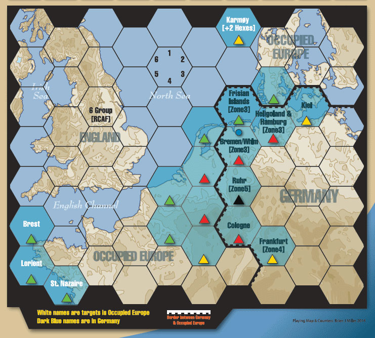 The game recreates events without excessive technical considerations and favors storytelling. The player chooses his crew, allocates points representing pilot/crew abilities, and, having assessed his strengths and weaknesses, chooses his flight path to the target. Tables and tracks printed on the map sheet provide quick access to information needed and action outcomes. Random events are revealed during flight as are encounters with Luftwaffe and Flak. The player is called upon to make life and death decisions every step of the way, in short, managing mayhem. Nothing in the game is scripted. Most missions play in five to 15 minutes. It is as close as you can get to flying over the Ruhr in a Wellington without climbing into a cockpit.