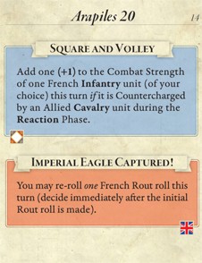The Napoleonic 20 Series features games of only modest complexity, each with a focused scope and low unit density (typically fewer than twenty pieces per side). The dramatic, fast-playing turns feature compelling historical narrative told through random event cards and the exciting ebb and flow of military units maneuvering and engaging in battle on the map. Replete with the surges, lulls, and "friction of war" that gives a great feel for the parry-and-thrust of a Napoleonic grade battle as armies close to bayonet-point to see which will break first!