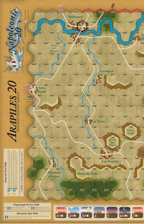 Considered one of Wellington’s finest battles, Arapiles 20 (July, 1812) from Lance McMillan focuses on the hard-fought meeting engagement between his veteran British forces and Mareschal Marmont’s French army in the hills south of Salamanca. With two armies of equal strength, victory requires careful planning, precise maneuvers, and exact timing to take advantage of the opportunities offered by unexpected events. Will the British player be able to pounce on a fleeting French blunder to win the day (as happened historically), or will the French be able to simply bludgeon his opponent into submission? In Arapiles 20, the outcome of this famous battle is in your hands.
