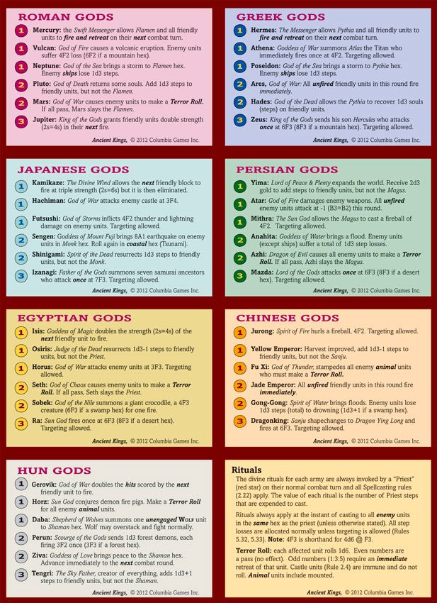 Ancient Kings includes new invocations for clerics that are based on the culture or deities of each army.