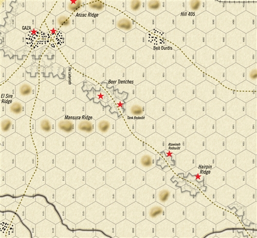 Gaza 1917 uses the Fire & Movement system. The movement and combat systems are designed around the realities of mechanized warfare, giving motorized and/or specially-trained units clear advantages. Players can augment units at the instant of combat with support fire, provided by weapons ranging from mortars through cannon and light ground attack aircraft to heavy bombers. A seemingly predictable assault can be overturned at the last minute by heavy defending fires, while even small units may develop tremendous offensive punch with the assistance of a heavy bombardment. Winning the battle is a matter of maneuver, firepower and asset management.