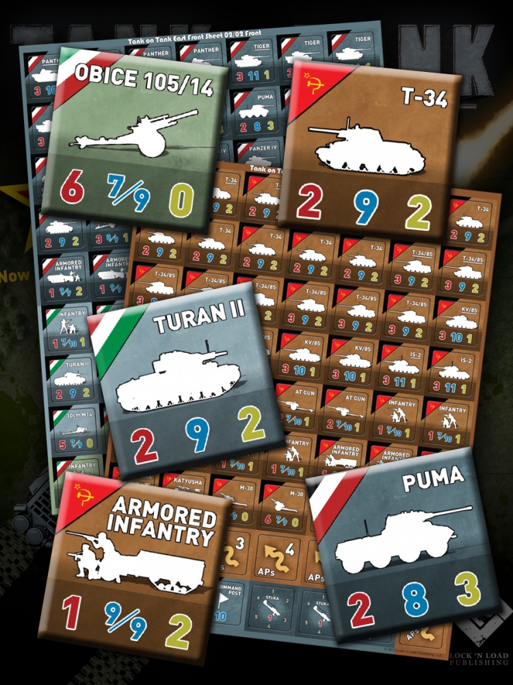 The units? Tank on Tank: East Front includes T-34s, KV/85s, Tigers, Panthers, Mark IVs, Turan IIs, as well as the infantry and anti-tank guns that fought alongside them, all presented on gigantic one-inch counters — no more squinting!