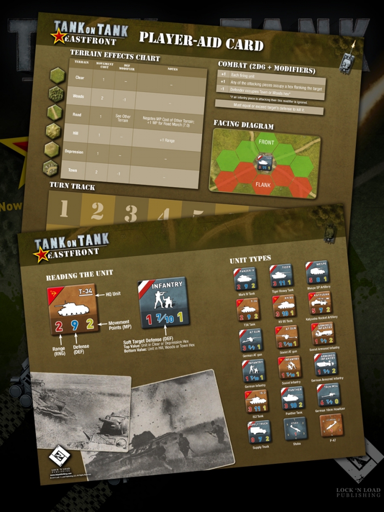 New in Tank on Tank: East Front are rules for improved positions, armored infantry, airstrikes, and the massed activation of Soviet units. Now you can experience the tactical flavor of World War II tank battles with a game that that can be learned in a few minutes and played during a lunch break.