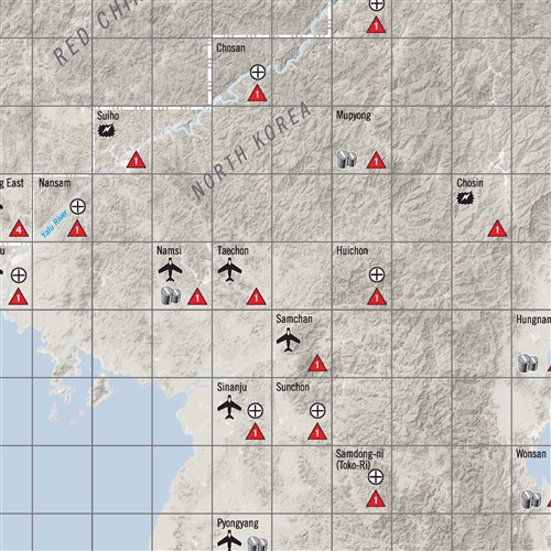 MiG Alley is a two-player game covering the air battles over North Korea in 1951. One player controls the UN forces and must carry out a series of bombing raids to knock out key targets in North Korea. The other player controls the communist forces, including masses of the new MiG-15 jet fighters, and attempts to inflict prohibitive losses on the UN.