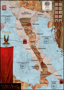 A la tête de quelques dizaines de gladiateurs, Spartacus met en déroute une milice romaine grâce à un stratagème. Fort de ce succès, son armée attire de nombreux esclaves en fuite. Toutefois, des dissensions apparaissent, Crixus le gaulois part avec une partie de l’armée. Rome envoie des préteurs qui sont défaits, puis l’année suivante des consuls. Spartacus arrivera t’il à fuir par Massilia ? ou devra t’il faire demi-tour vers la Sicile ou ravagera t’il toute l’Italie comme le conseille Crixus pour libérer tous les esclaves ? Dans tous les cas, il faudra faire vite, car Pompée revient d’Espagne et le riche Crassus lève 8 légions à Rome. A vous de prendre en main le destin des rebelles ou de Rome.
