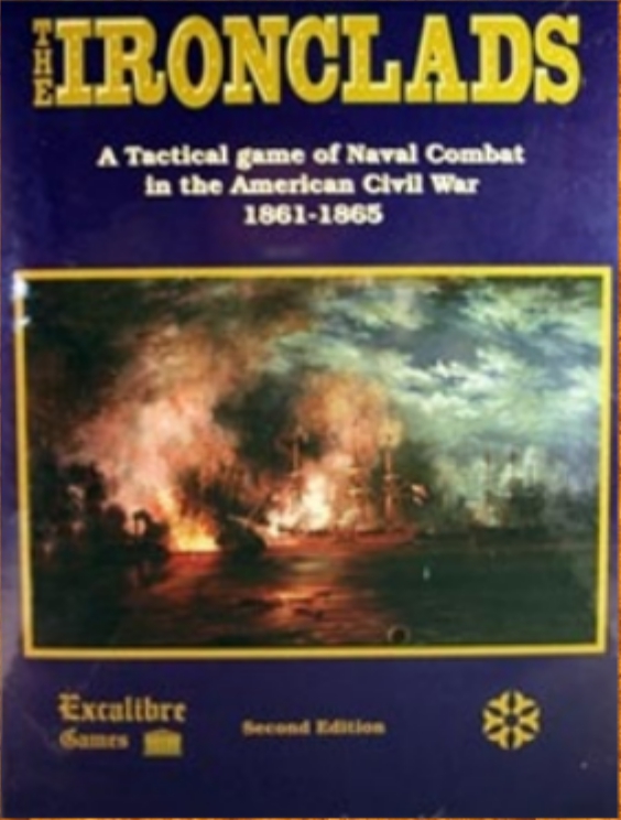 The IRONCLADS is a tactical level, simultaneous movement, game of ship-to-ship combat in the American Civil War. Players move one or more of over 130 counters that represent individual ships over a large (42" x 27-1/2") four pieceqeomorphlc mapboard as they attempt to outmaneuver and out-shoot their opponents. 45 ship specification cards give such vital information as the number, size, location and play of individual guns that are fired separately using specific range and penetration tables for each weapon. The ship specification card also contains target information for such areas as; armor, siding, decking, smoke stack, hull, pilot house, waterline, crew and gun hits. Other unit counters include five individual forts, floating batteries, mines, torpedos, booms, piles, heavy obstructions, fires, damaged ships, sunk ships, mortar rafts and much more.