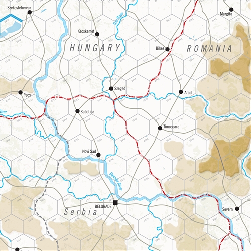 Each hex on the map equals about 20 miles. Each game turn represents 2-5 days, depending on the scenario chosen and the weather currently in effect. Every ground unit represents a division, division-equivalent, or brigade of about 5,000 to 20,000 men and/or 50 to 350 armored fighting vehicles.
