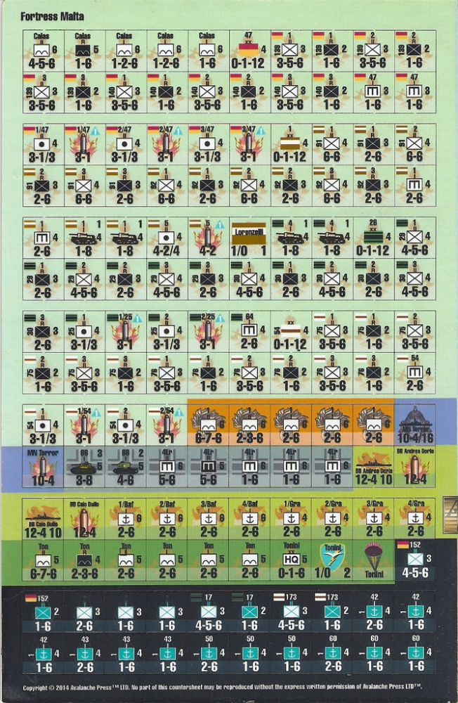 Island of Death is a game based on German and Italian plans to capture the strategic island, a battle that never actually took place. Now Fortress Malta extends the game to look at other alternative plans and defenses. It is not playable by itself; Island of Death is required to enjoy the scenarios presented in Fortress Malta.