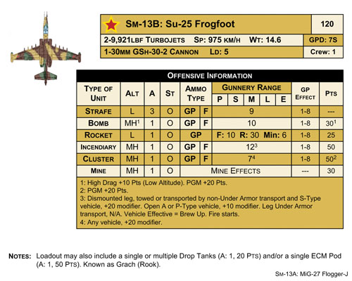 The rules cover the total realm of modern mechanized combat with ATGMs, including TOW and deadly Soviet gun launched missiles like the AT-11 Sniper and AT-8 Songster, special armor (including ERA), advanced night fighting with thermal imagers and image intensifiers, advanced artillery with ICM and laser guided shells, helicopters, including the AH-64A Apache and Mi-24P Hind-F, attack aircraft, including the A-10A Warthog and Su-25 Frogfoot, and missile and gun armed AA units to counter the deadly air threats. It is all included in this total package.
