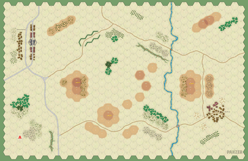 Vehicles, towed guns and aircraft are scaled at 1:1 with each 7/8” double-sided counter representing a single unit