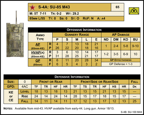 Vehicle include 11 unique hit locations, armor angles and penetration charts for level, rising and falling fire