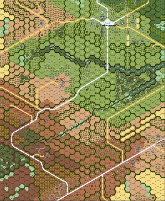 St-Georges-d’Elle France, 11 July 1944: By late morning, the 1st Battalion, US 23d Infantry Regiment was finally able to cross Purple Heart Draw, but had suffered heavy casualties. Meanwhile on the east side of St-Georges-d'Elle, the Germans still held the lower end of Purple Heart Draw. It was decided that in an effort to draw off any Germans from reinforcing their position in front of the 1st Battalion’s main effort, the 3d Battalion, US 23d Infantry Regiment would launch a series of diversionary attacks. Company L, US 23d Infantry Regiment started forward, tasked with the clearance of the eastern half of St-Georges-d'Elle, but no sooner had it cleared the last hedgerow just north of the town, when it too came under heavy fire...