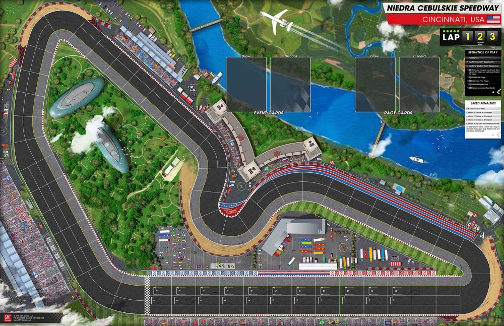 Yellow flag saves are not as common in F1 and pit strategy is even more important. The penalty threshold for wear is lower and pitting will happen more frequently. In addition to typical wear like suspension damage, tire wear and engine wear, Grand Prix incorporates “close-call” tokens for aggressive drivers. These do not count against speed but they do constantly pile up until an event card calls for the player with the most to pay the consequences.