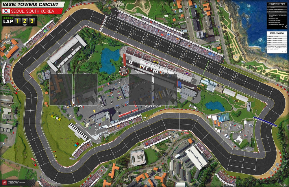 The courses of the Grand Prix are not simple ovals or wide open super speedways but tight tracks that will limit passing opportunities and require finesse and skill to make it to the front of the line. The game borrows heavily from the Thunder Alley movement classes so you will find a familiar combination of solo, line, pursuit and lead movement in this game as well. But the abilities are tweaked to maximize the feel of Formula 1 racing. It will be up to the players to learn how the courses and the cards work together on each track to optimize their play.