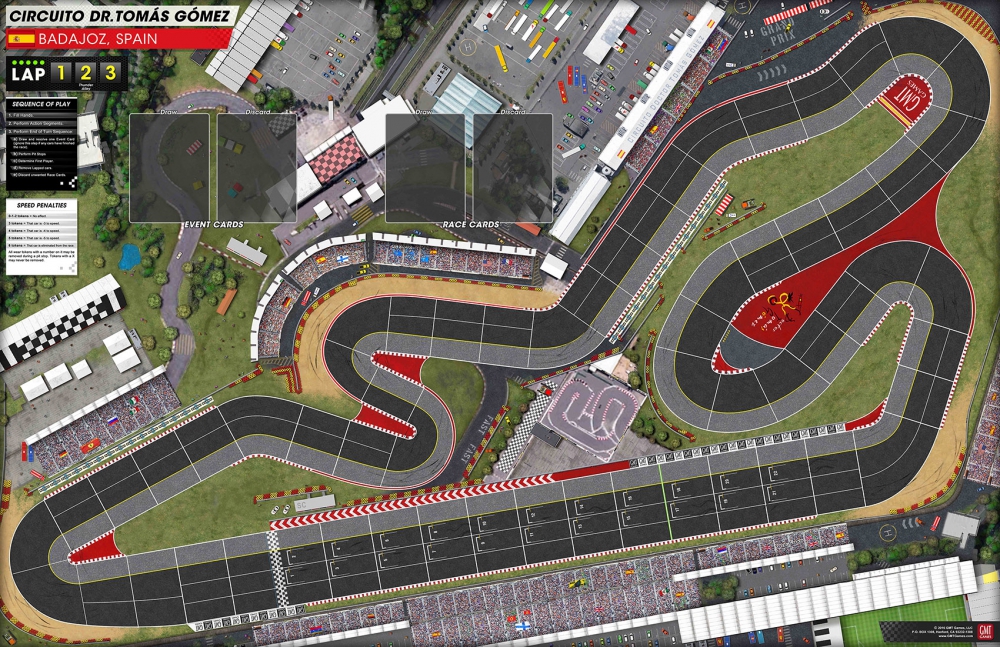 Grand Prix is the newest auto racing game from Jeff & Carla Horger and GMT Games. From 2-11 players can compete in the game controlling either one team of two cars or multiple teams. Players will score in two different ways; individual car scoring where first place is huge and only the top 10 places get any points, and team scoring where the placement of all cars in a race will determine the team score.