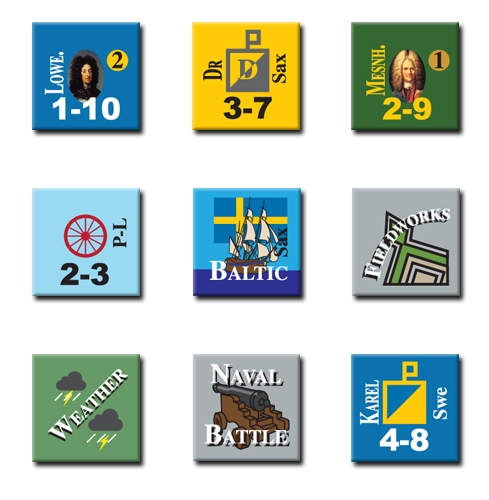Great Northern War is a wargame covering the Swedish-Russian War of 1700-09. This period of the war ended with the decisive battle of Poltava. Scenarios show various periods of fighting. There are two sides in the game, the Swedish Empire (Empire for short) which is defined as Sweden and its allies, and the Russian Coalition (Coalition for short), which is defined as Russia and its allies. Players conduct Actions which generate discrete movement, combat, and other operations. Each turn represents a season of operations. During each turn, players take various Actions, alternating one at a time with the other.