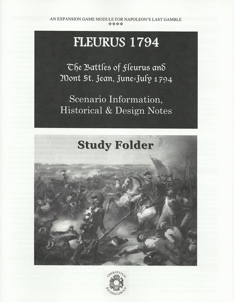 Fleurus 1794 is an Expansion Game Module for Napoleon's Last Gamble. It requires the south map from Napoleon's Last Gamble and the southern-extension map from Napoleon's Last Gamble Expansion Kit. The four scenarios cover the battles of Fleurus and Mont St Jean played on the NLG maps. Veterans of TLNB will have an opportunity to examine a key campaign from the French Revolutionary Wars.
